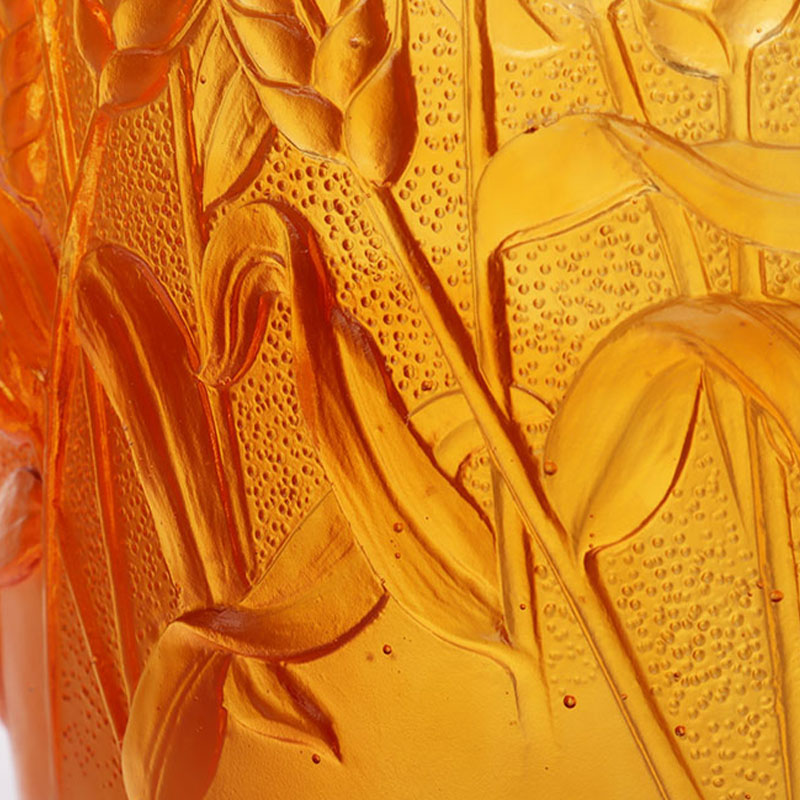 As obras de arte em vidro evoluíram gradualmente de presentes artesanais tradicionais para abranger móveis decorativos, cultura budista, talheres de cristal e joias da moda. A base de produção da empresa está localizada na bela e próspera cidade aquática de Jinxi, em Kunshan, província de Jiangsu. Possui um espaço de pesquisa e desenvolvimento para produção de vidro que abrange 35 mil metros quadrados. A instalação está equipada com recursos de design independente, técnicas de modelagem em argila e recursos tecnológicos de pesquisa e desenvolvimento, demonstrando habilidades maduras tanto no desenvolvimento de produtos quanto nos processos de fabricação.