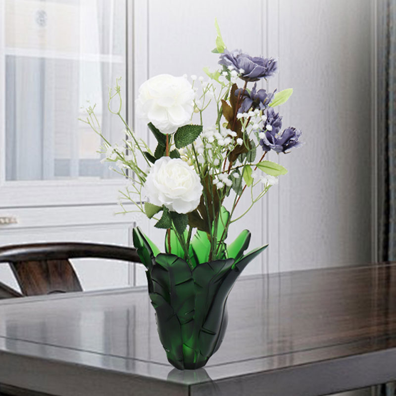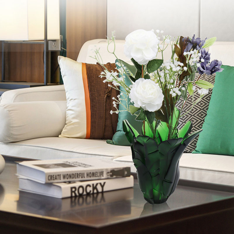 Página inicial / Produtos / Utensílios de cristal / Vaso de cristal / Vaso de vidro de folha de bananeira verde para decoração de casa