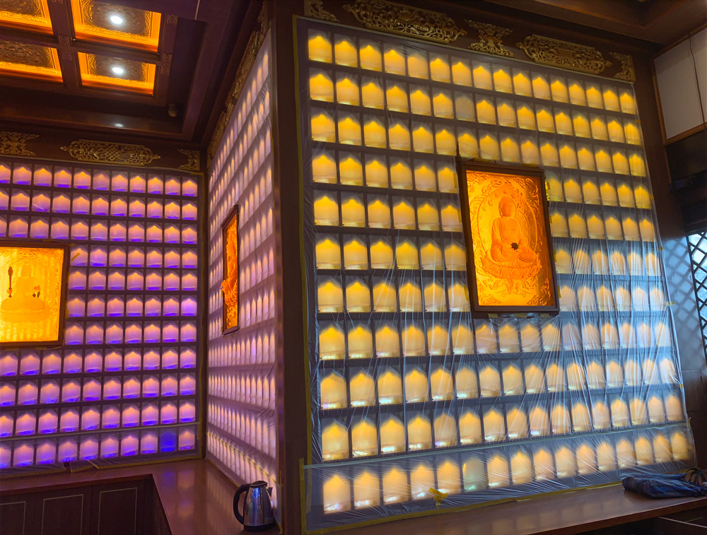 2. Material da estátua de Buda de vidro: Tamanho do vidro: 150 * 150 * 280 mm